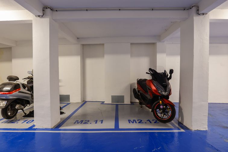 Parking bien éclairé, emplacement de scooter /moto parfait