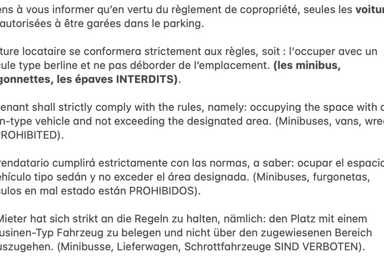 Garez-vous sur les places indiquées lors de la confirmation de la réservation.